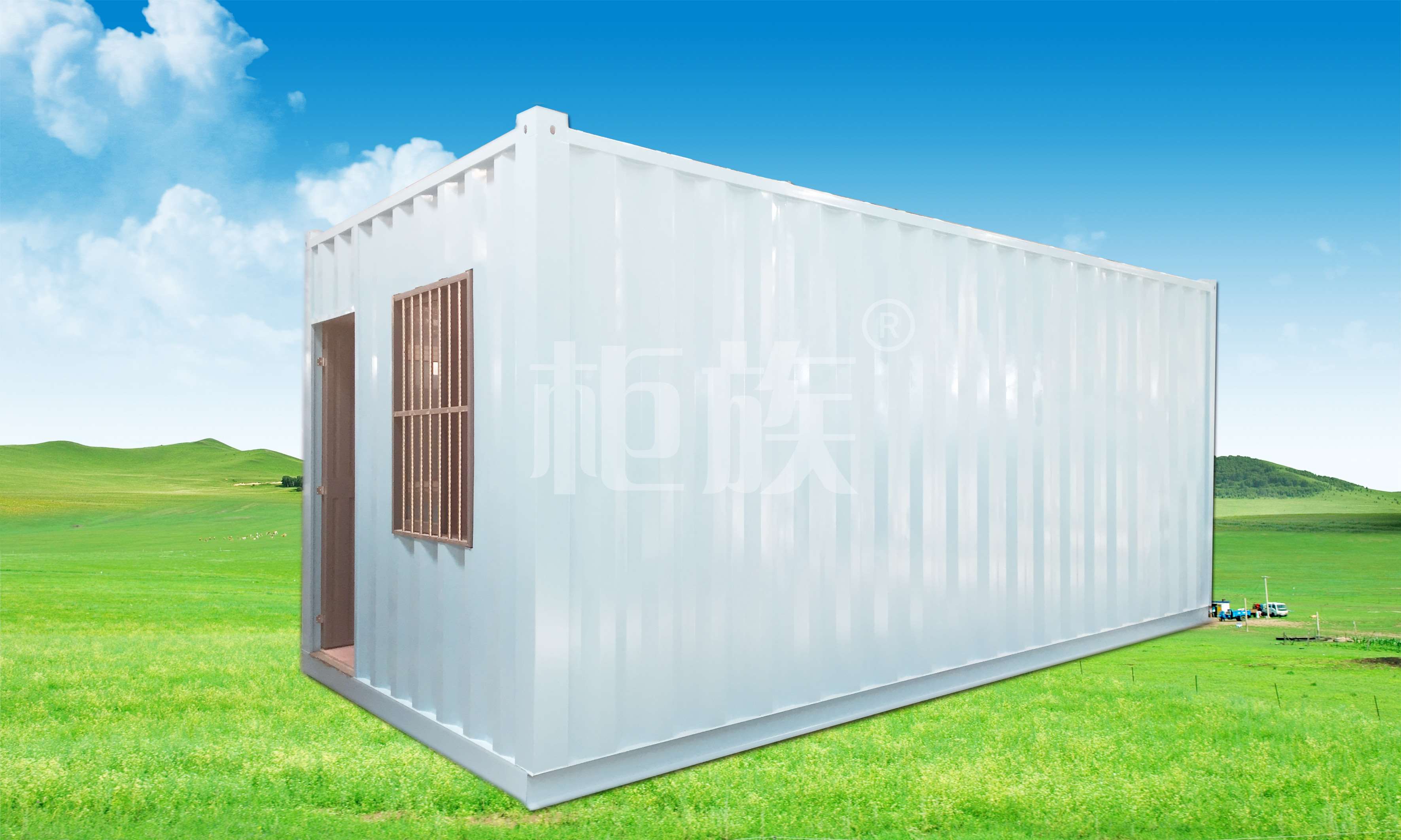 Wall panel/Top plate: exterior wall panel 0.5mm galvanized large corrugated iron plate, interlayer 50mm glass wool, interior wall 0.36mm galvanized sheet
