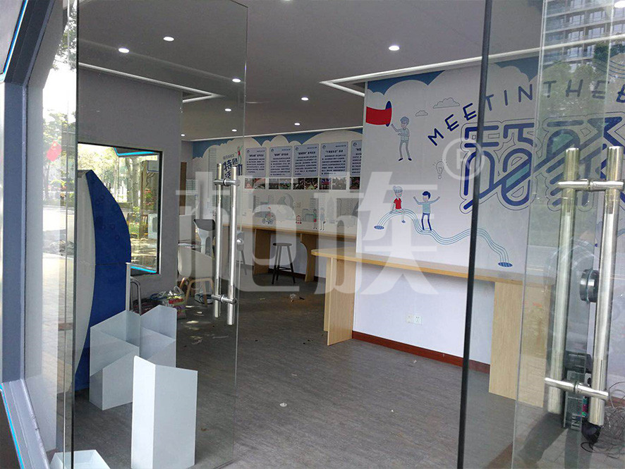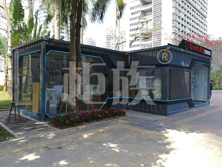 驛站使用兩個集裝箱錯位串聯而成,正面墻體使用大面積玻璃門窗,線條流暢、造型時尚、通透亮堂,很好的突出了驛站的標志性與開放性的特點。